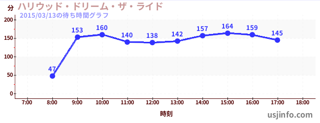 • ハリウッド・ドリーム・ザ・ライド$B$N(B2015年03月13日の待ち時間