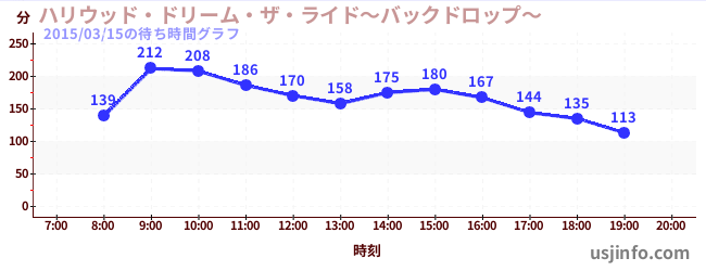 • ハリウッド・ドリーム・ザ・ライド〜バックドロップ〜$B$N(B2015年03月15日の待ち時間