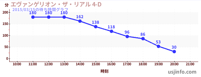 • エヴァンゲリオン・ザ・リアル 4-D$B$N(B2015年03月15日の待ち時間