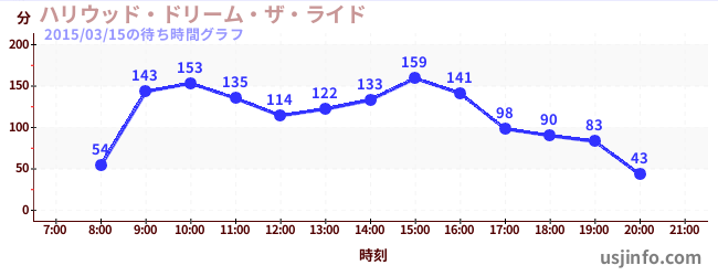 • ハリウッド・ドリーム・ザ・ライド$B$N(B2015年03月15日の待ち時間