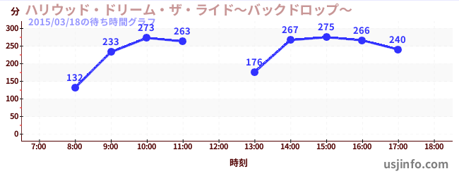 • ハリウッド・ドリーム・ザ・ライド〜バックドロップ〜$B$N(B2015年03月18日の待ち時間