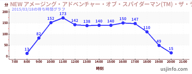 • NEW アメージング・アドベンチャー・オブ・スパイダーマン(TM)・ザ・ライド 4K3D$B$N(B2015年03月18日の待ち時間