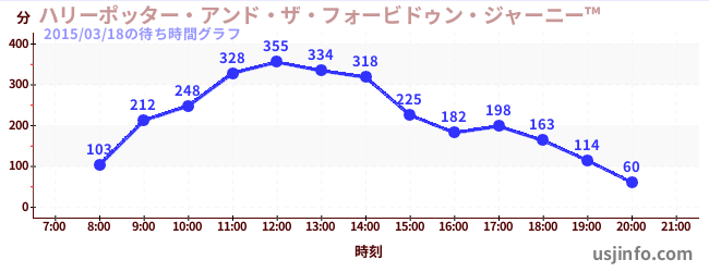 • ハリーポッター・アンド・ザ・フォービドゥン・ジャーニー™$B$N(B2015年03月18日の待ち時間