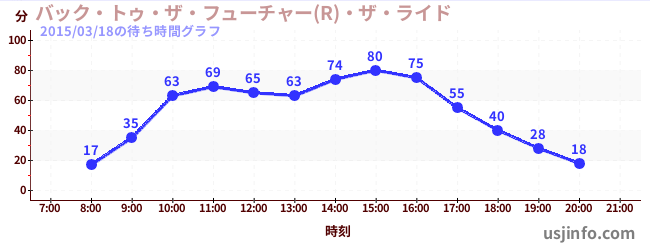 • バック・トゥ・ザ・フューチャー(R)・ザ・ライド$B$N(B2015年03月18日の待ち時間