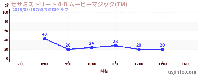 • セサミストリート 4-D ムービーマジック(TM)$B$N(B2015年03月18日の待ち時間