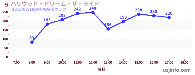 • ハリウッド・ドリーム・ザ・ライド$B$N(B2015年03月18日の待ち時間