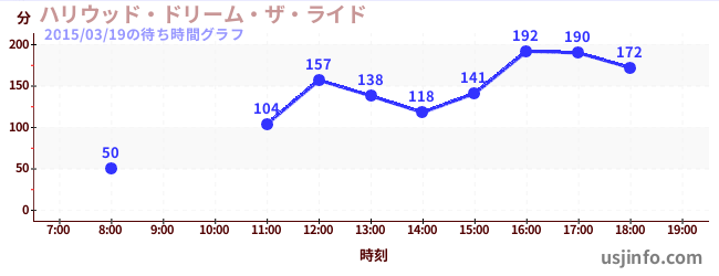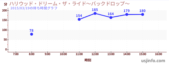 • ハリウッド・ドリーム・ザ・ライド$B$N(B2015年03月19日の待ち時間