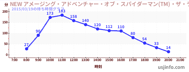 • NEW アメージング・アドベンチャー・オブ・スパイダーマン(TM)・ザ・ライド 4K3D$B$N(B2015年03月19日の待ち時間