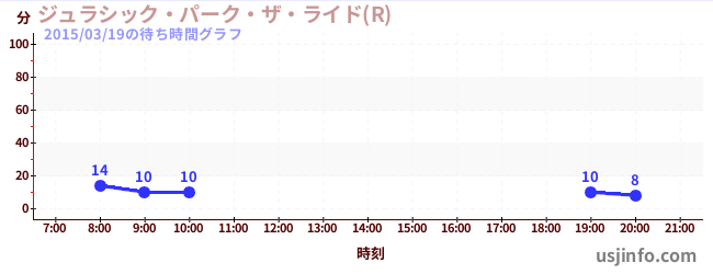 • ジュラシック・パーク・ザ・ライド(R)$B$N(B2015年03月19日の待ち時間