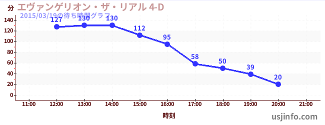 • エヴァンゲリオン・ザ・リアル 4-D$B$N(B2015年03月19日の待ち時間