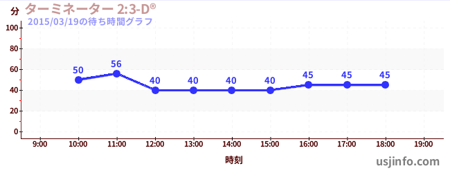 • ターミネーター 2:3-D®$B$N(B2015年03月19日の待ち時間