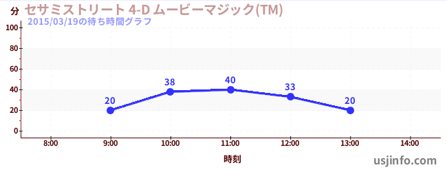 • セサミストリート 4-D ムービーマジック(TM)$B$N(B2015年03月19日の待ち時間