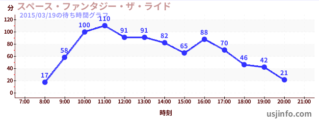 • スペース・ファンタジー・ザ・ライド$B$N(B2015年03月19日の待ち時間