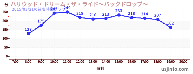 • ハリウッド・ドリーム・ザ・ライド〜バックドロップ〜$B$N(B2015年03月21日の待ち時間