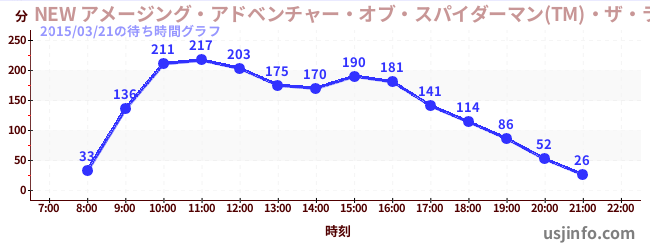 • NEW アメージング・アドベンチャー・オブ・スパイダーマン(TM)・ザ・ライド 4K3D$B$N(B2015年03月21日の待ち時間