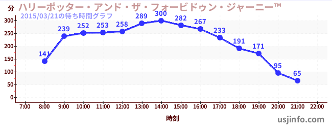 • ハリーポッター・アンド・ザ・フォービドゥン・ジャーニー™$B$N(B2015年03月21日の待ち時間