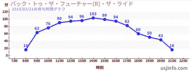 • バック・トゥ・ザ・フューチャー(R)・ザ・ライド$B$N(B2015年03月21日の待ち時間
