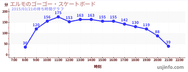 • エルモのゴーゴー・スケートボード$B$N(B2015年03月21日の待ち時間
