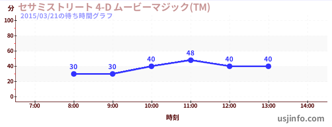 • セサミストリート 4-D ムービーマジック(TM)$B$N(B2015年03月21日の待ち時間