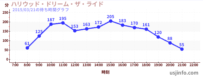 • ハリウッド・ドリーム・ザ・ライド$B$N(B2015年03月21日の待ち時間