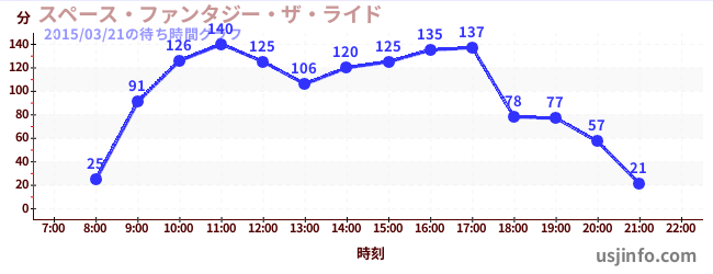• スペース・ファンタジー・ザ・ライド$B$N(B2015年03月21日の待ち時間