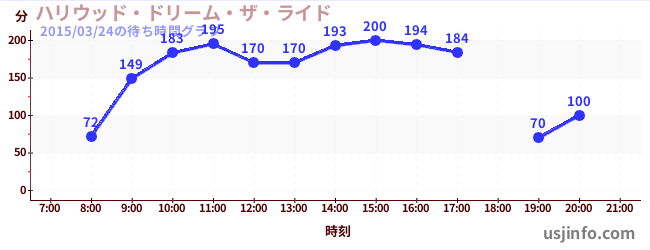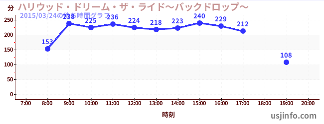 • ハリウッド・ドリーム・ザ・ライド〜バックドロップ〜$B$N(B2015年03月24日の待ち時間