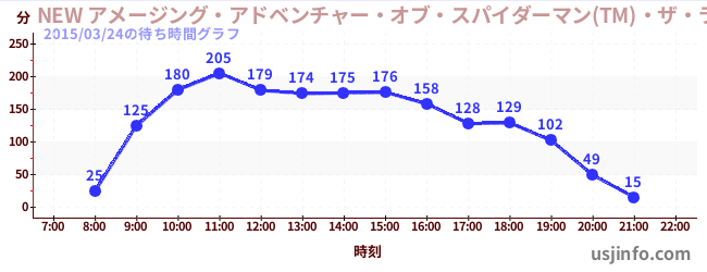 • NEW アメージング・アドベンチャー・オブ・スパイダーマン(TM)・ザ・ライド 4K3D$B$N(B2015年03月24日の待ち時間