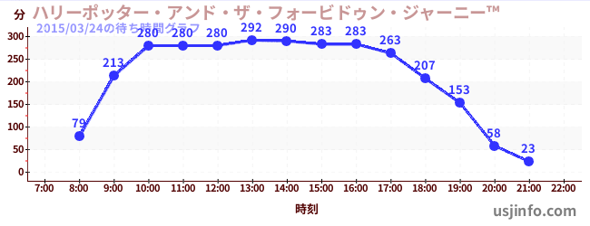 • ハリーポッター・アンド・ザ・フォービドゥン・ジャーニー™$B$N(B2015年03月24日の待ち時間
