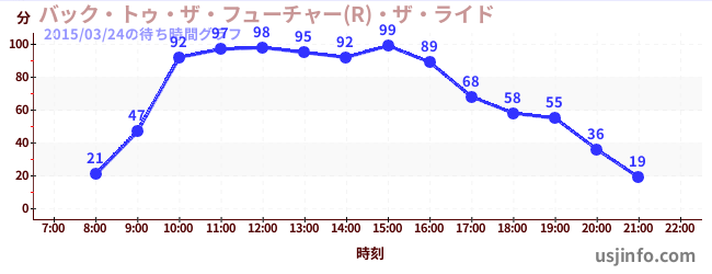 • バック・トゥ・ザ・フューチャー(R)・ザ・ライド$B$N(B2015年03月24日の待ち時間