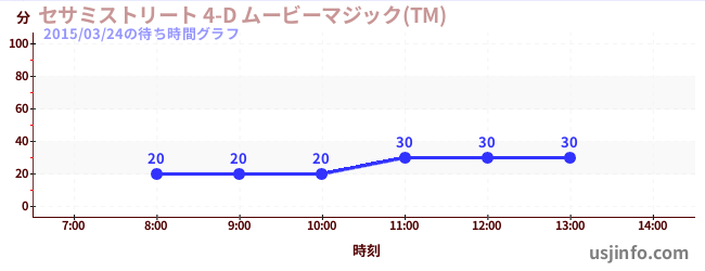 • セサミストリート 4-D ムービーマジック(TM)$B$N(B2015年03月24日の待ち時間