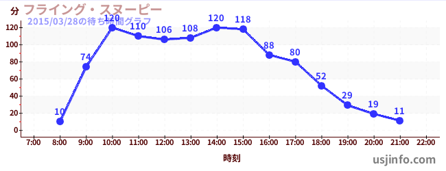• フライング・スヌーピー$B$N(B2015年03月28日の待ち時間