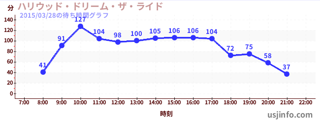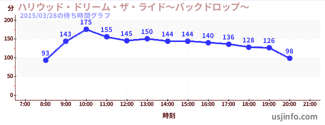 • ハリウッド・ドリーム・ザ・ライド〜バックドロップ〜$B$N(B2015年03月28日の待ち時間