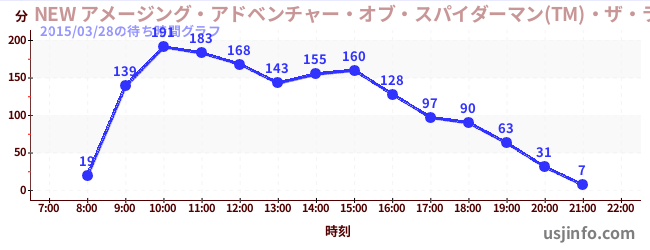 • NEW アメージング・アドベンチャー・オブ・スパイダーマン(TM)・ザ・ライド 4K3D$B$N(B2015年03月28日の待ち時間