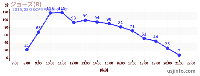 • ジョーズ(R)$B$N(B2015年03月28日の待ち時間