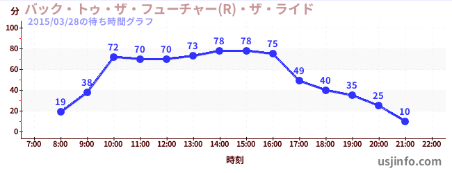 • バック・トゥ・ザ・フューチャー(R)・ザ・ライド$B$N(B2015年03月28日の待ち時間