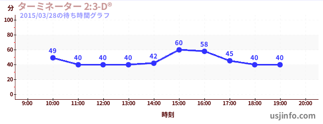 • ターミネーター 2:3-D®$B$N(B2015年03月28日の待ち時間