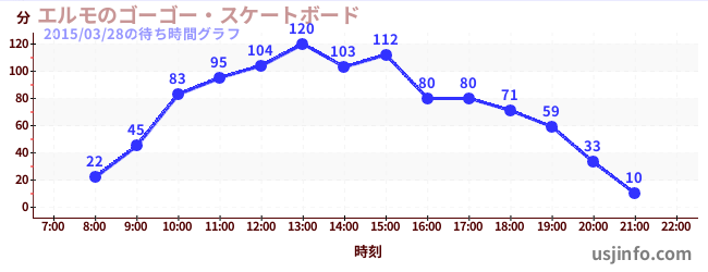 • エルモのゴーゴー・スケートボード$B$N(B2015年03月28日の待ち時間