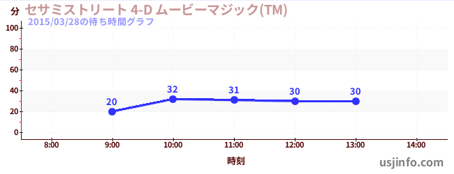 • セサミストリート 4-D ムービーマジック(TM)$B$N(B2015年03月28日の待ち時間