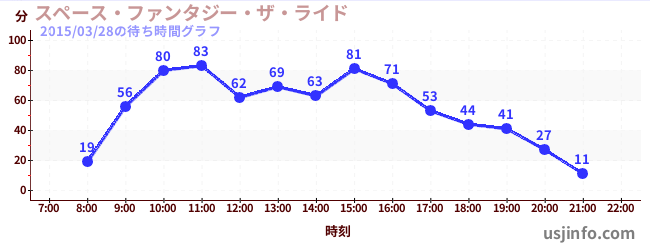 • スペース・ファンタジー・ザ・ライド$B$N(B2015年03月28日の待ち時間