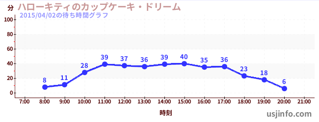 • ハローキティのカップケーキ・ドリーム$B$N(B2015年04月02日の待ち時間