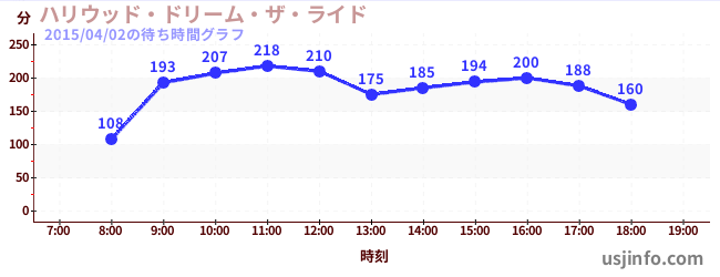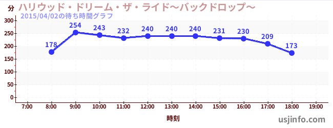 • ハリウッド・ドリーム・ザ・ライド〜バックドロップ〜$B$N(B2015年04月02日の待ち時間