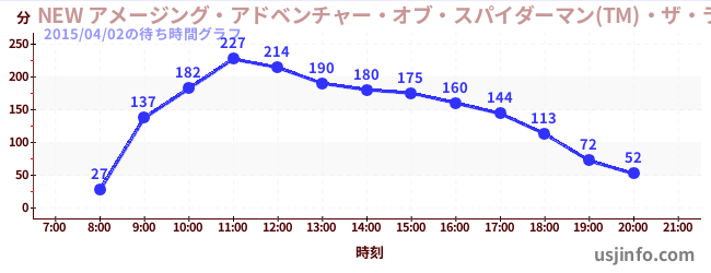 • NEW アメージング・アドベンチャー・オブ・スパイダーマン(TM)・ザ・ライド 4K3D$B$N(B2015年04月02日の待ち時間