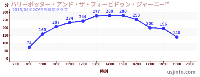 • ハリーポッター・アンド・ザ・フォービドゥン・ジャーニー™$B$N(B2015年04月02日の待ち時間