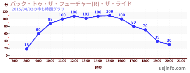 • バック・トゥ・ザ・フューチャー(R)・ザ・ライド$B$N(B2015年04月02日の待ち時間