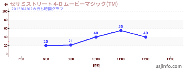 • セサミストリート 4-D ムービーマジック(TM)$B$N(B2015年04月02日の待ち時間