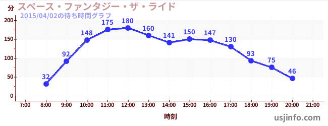 • スペース・ファンタジー・ザ・ライド$B$N(B2015年04月02日の待ち時間
