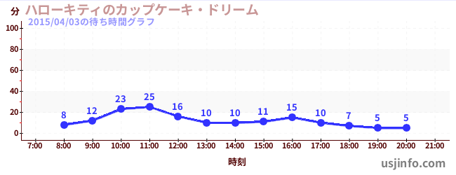 • ハローキティのカップケーキ・ドリーム$B$N(B2015年04月03日の待ち時間
