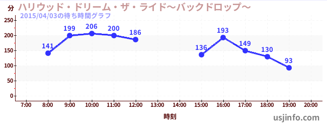 • ハリウッド・ドリーム・ザ・ライド〜バックドロップ〜$B$N(B2015年04月03日の待ち時間