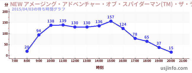 • NEW アメージング・アドベンチャー・オブ・スパイダーマン(TM)・ザ・ライド 4K3D$B$N(B2015年04月03日の待ち時間