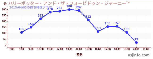 • ハリーポッター・アンド・ザ・フォービドゥン・ジャーニー™$B$N(B2015年04月03日の待ち時間